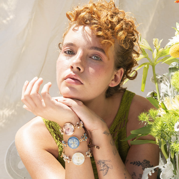 Accesorio elaborado con flores naturales del Oriente Antioqueño. Un producto 100% hecho a mano con el valor de una pieza artesanal colombiana.