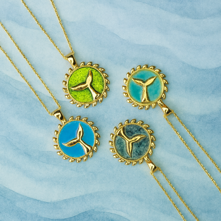 Collar con dije en forma de ecola de ballena , 100% hechos a mano y 100% en Colombia.