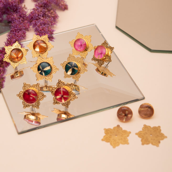 *Arete topo mini flor resina, herraje intercambiable con baño oro 24k.