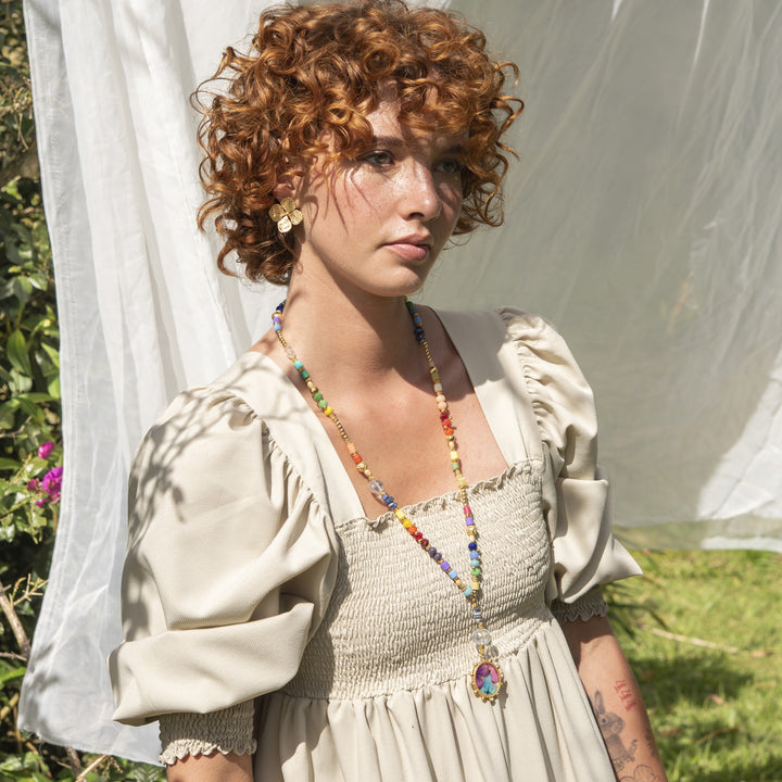 Pieza elaborada con flores naturales del Oriente Antioqueño. Un producto 100% hecho a mano con un valor artesanal colombiano.