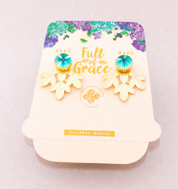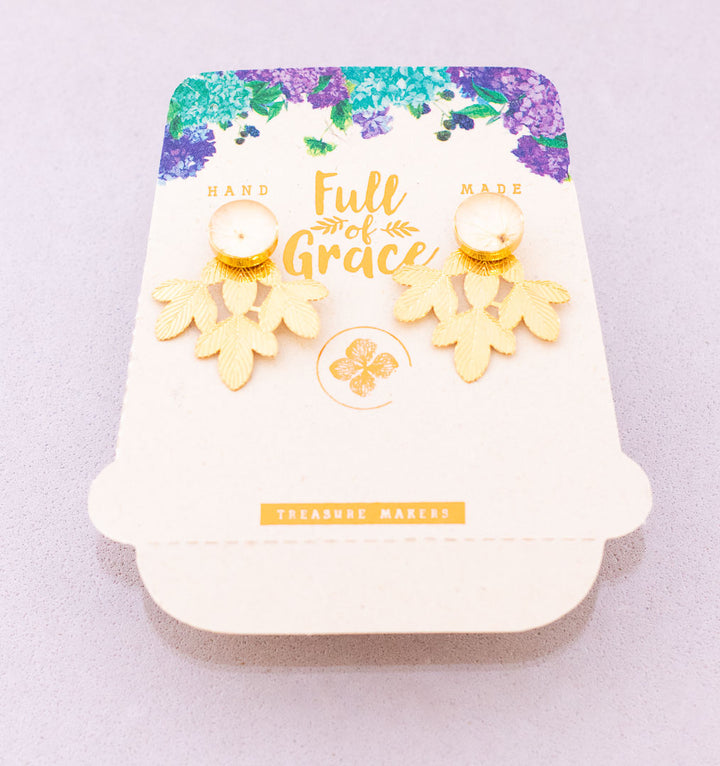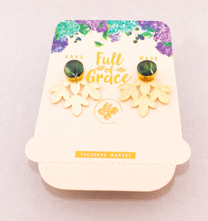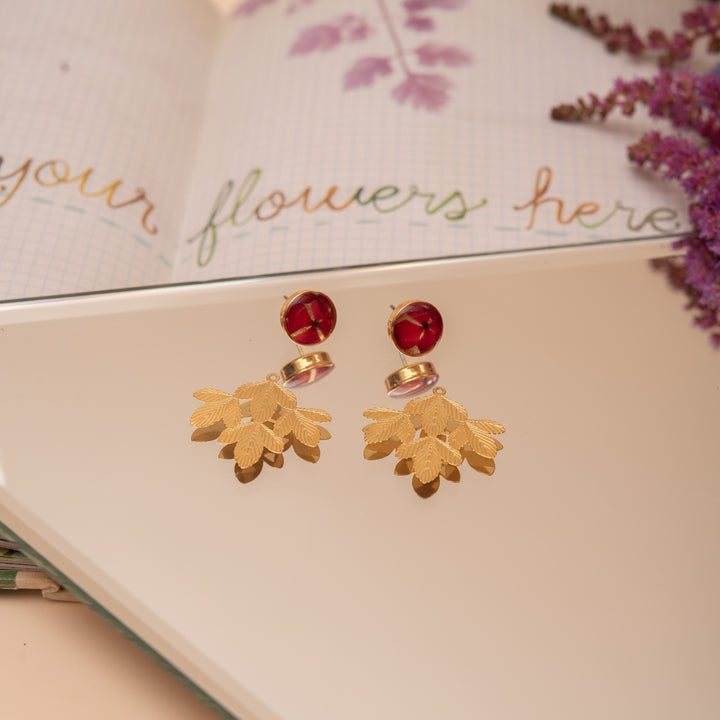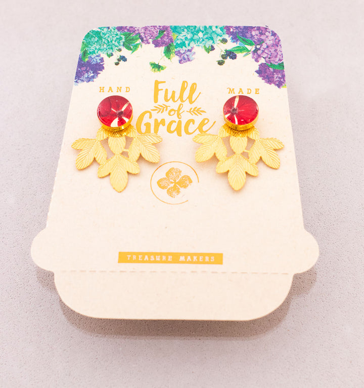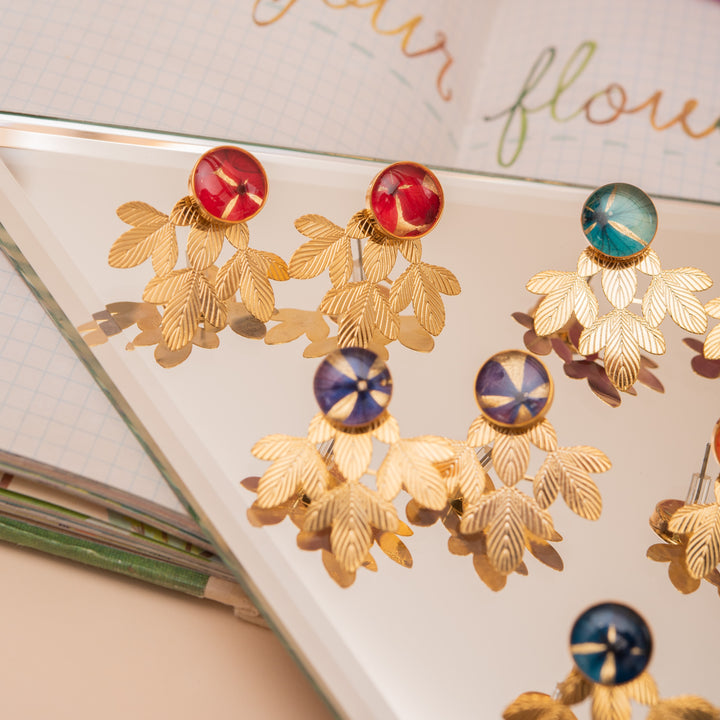 *Arete topo mini rama flor resina, herraje intercambiable con baño oro 24k.