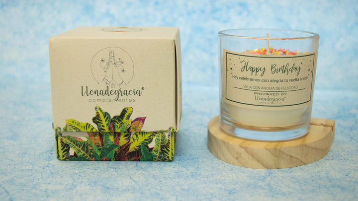 Vela con aroma a felicidad.