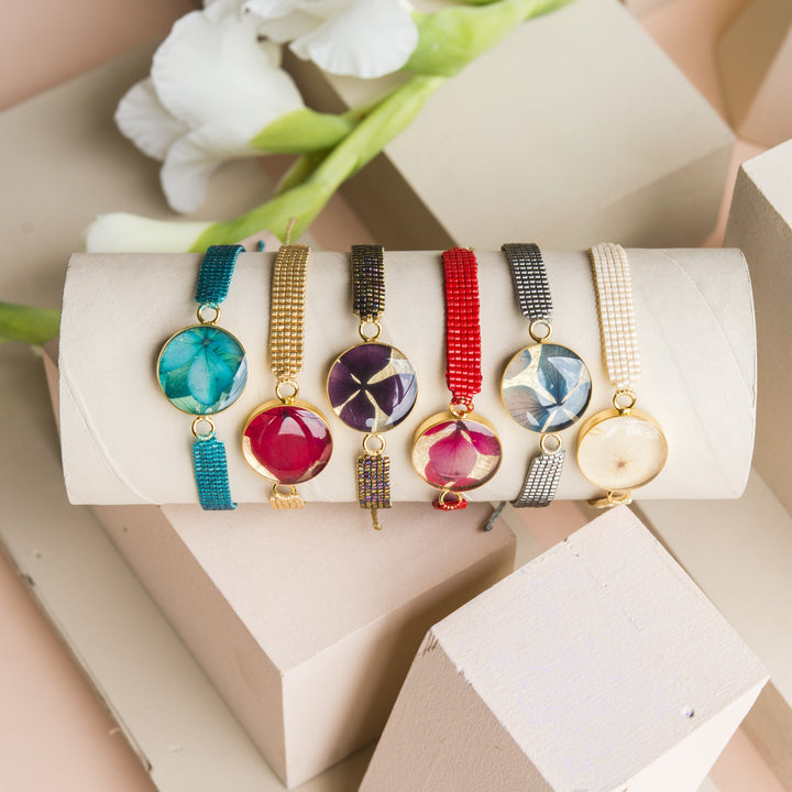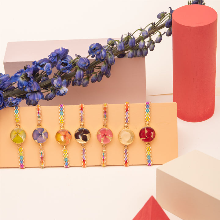 Pulsera en resina con caja, tejido Miyuki