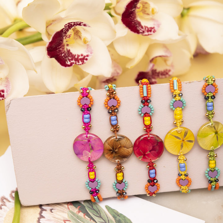 No te llevas un accesorio más, realmente estás adquiriendo un tesoro con mucho valor agregado: 100% hecho a mano (desde el baño del herraje, el tejido hasta el ensamble y resinado de tu tesoro) 100% hecho en colombia y 100% hecho con flores completamente naturales de cultivo del oriente antioqueño.