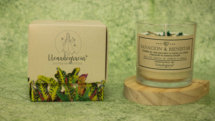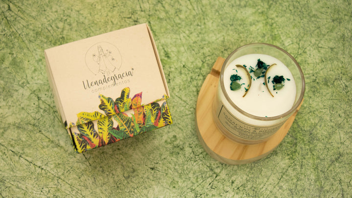 70% cera vegetal 30% parafina - Puedes hacer masajes o humectar tus manos luego de apagarla.